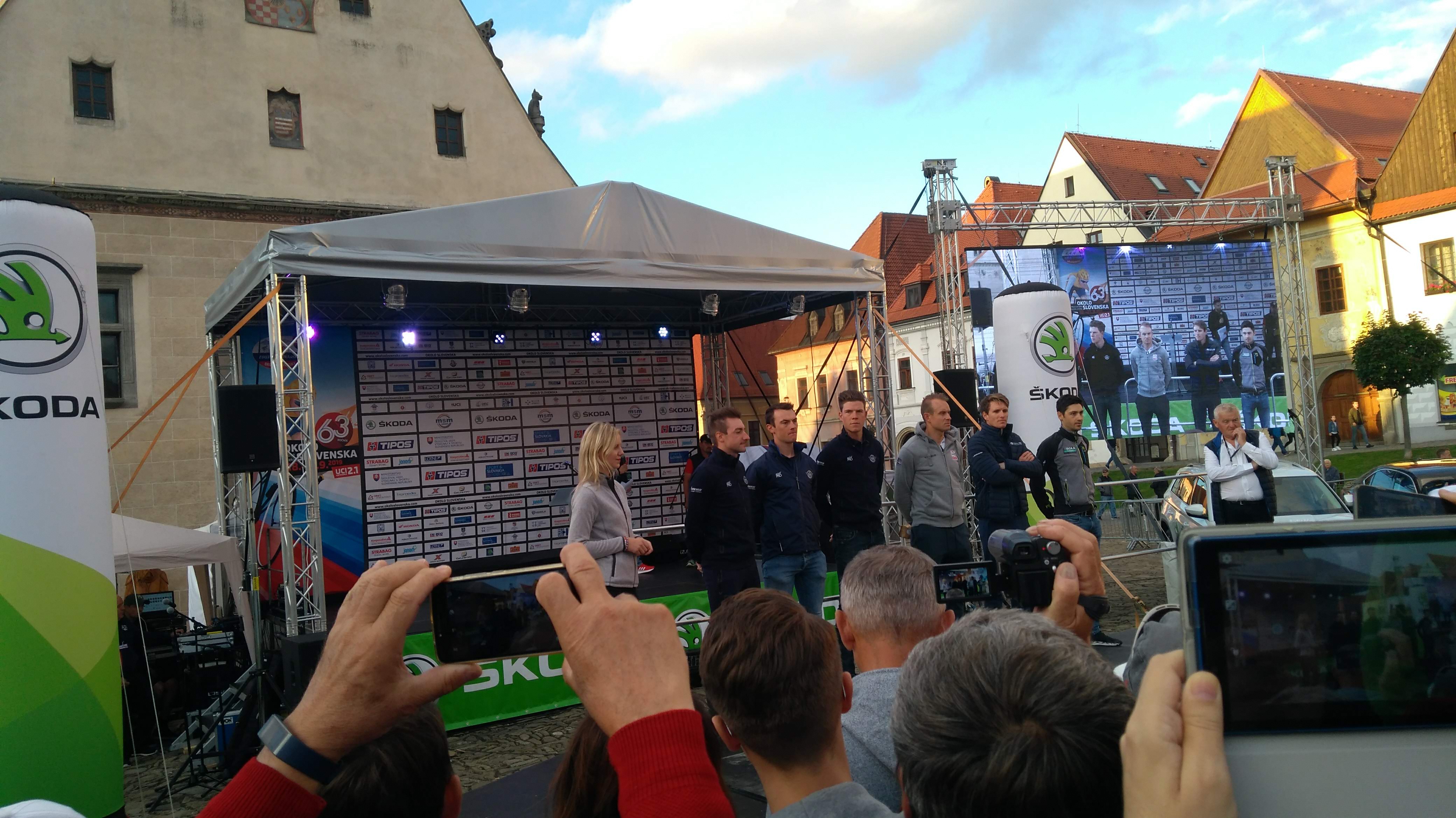 Prvá etapa mala štartovať až ráno nasledujúceho dňa. V predvečer štartu sa na krásnom stredovekom námestí v Bardejove konala prezentácia tímov, ktorá nás mala naladiť na prvú etapu. Na námestie sme dorazili v čase, keď sa už začínalo plniť ľuďmi. Čakanie na cyklistov nám spríjemňoval sprievodný folklórny program. Počas toho sme sa dostali dopredu k zábranám, aby sme mali čo najlepší výhľad na pódium, na ktoré postupne prichádzali cyklisti. Najviac sme sa tešili na Emanuela Buchmana, ktorý v tom roku obsadil neskutočné štvrté miesto na Tour de France. Za zmienku určite stoja aj iné mená, ktoré patrili medzi tzv. najväčšie hviezdy pretekov. Medzi prvými predstavenými pretekármi boli práve tí najväčší favoriti. Vidieť Emanuela Buchmana, Alexandra Kristoffa či Eliu Vivianiho naživo bol jedným z najväčších zážitkov večera. Stáť pár metrov od najlepších šprintérov sveta, ktorí pravidelne bojujú s Petrom Saganom o víťazstvo, je niečo, čo nenechá chladným žiadneho nadšenca cyklistiky.