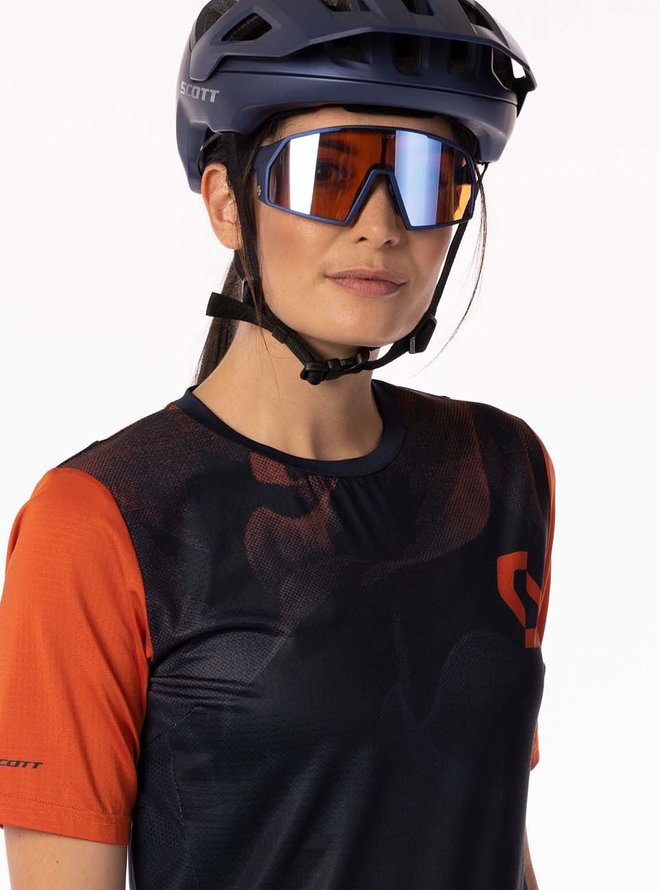Cyklistický dres s krátkym rukávom - TRAIL VERTIC SS LADY - modrá/oranžová