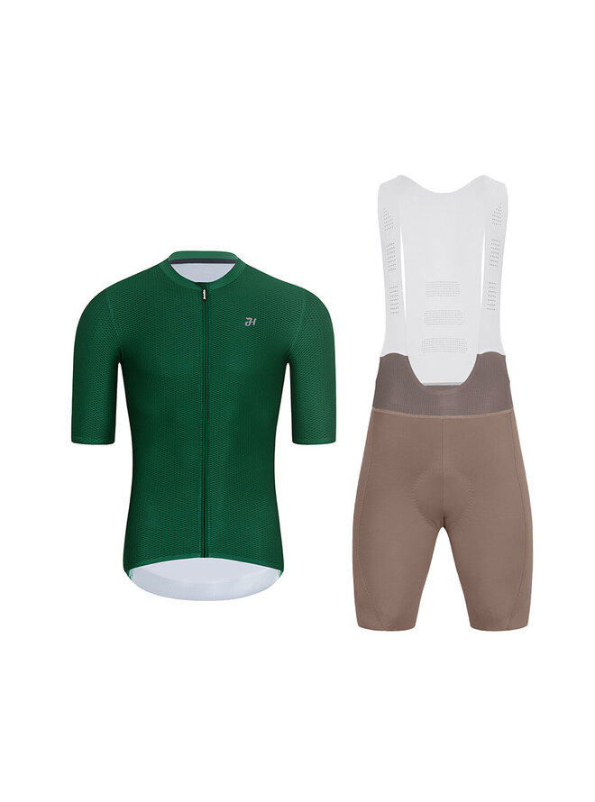 Cyklistický krátky dres a krátke nohavice - AEROLITE - zelená/hnedá