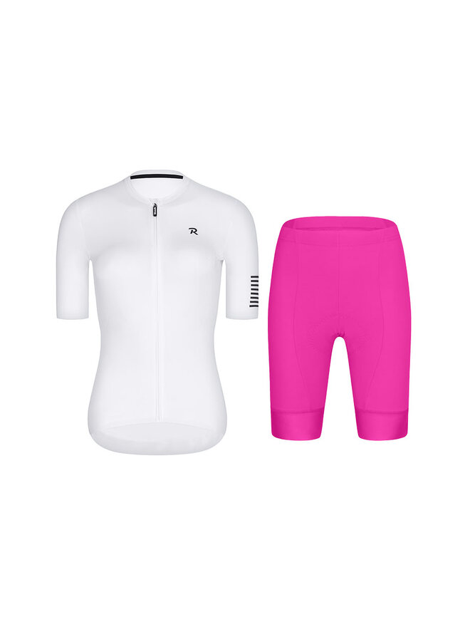 Cyklistický krátky dres a krátke nohavice - VICTORIOUS LADY - cyklamenová/biela
