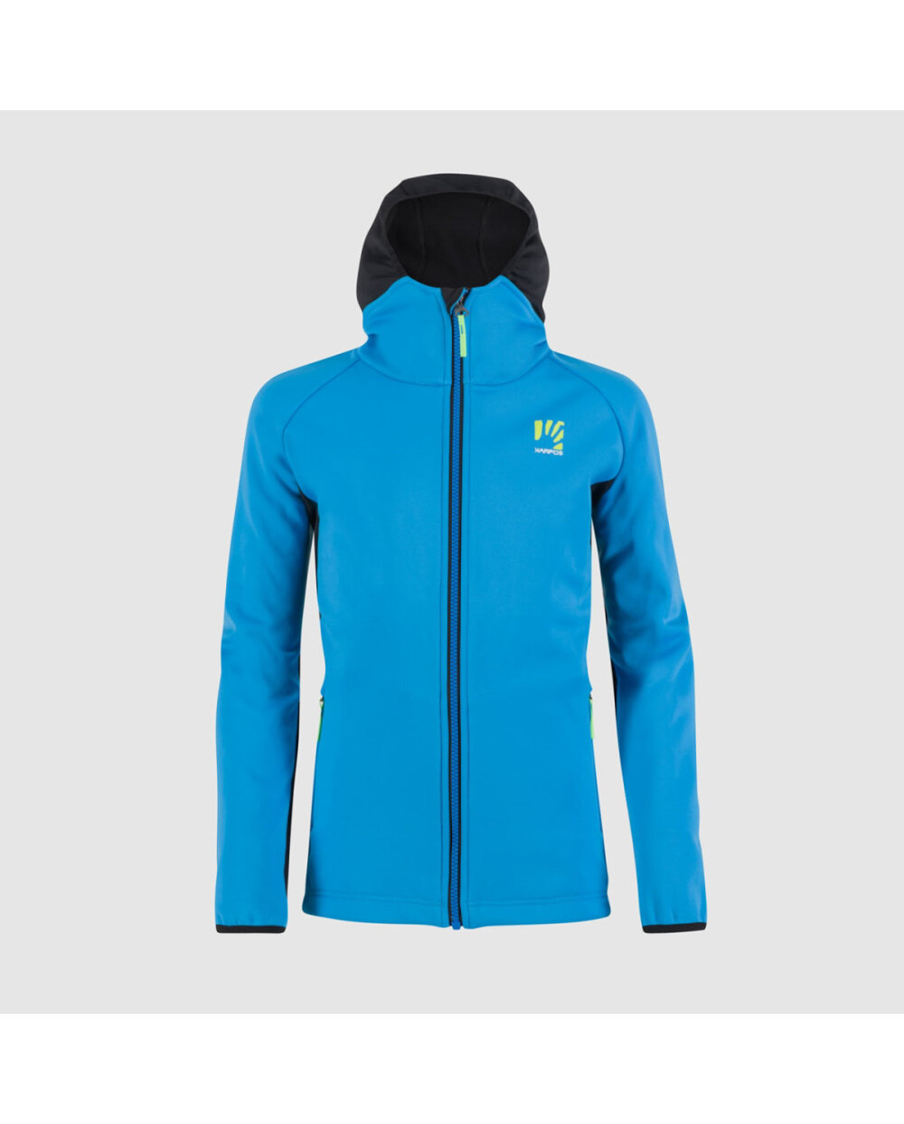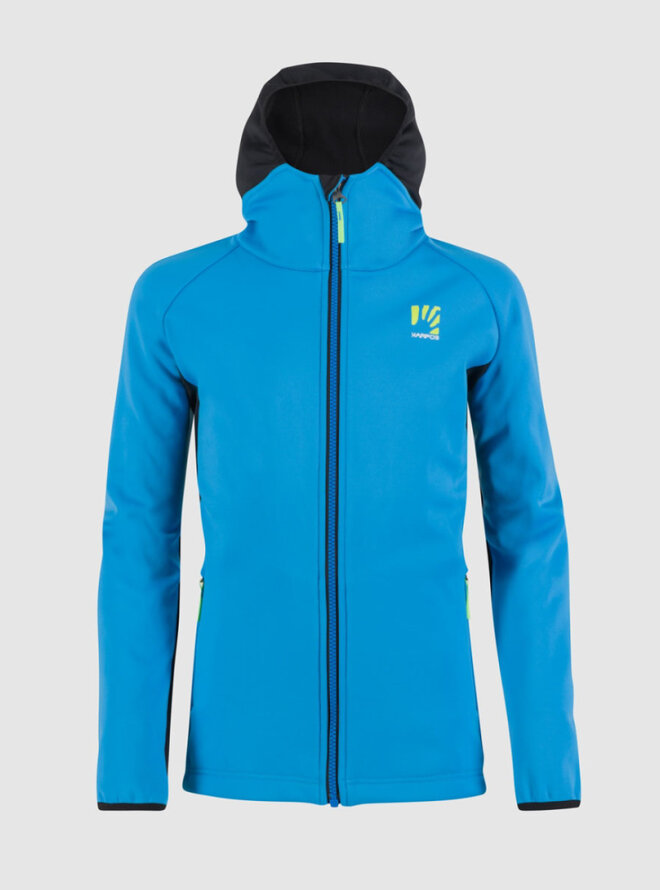 Detská bunda s kapucňou Karpos Lavaredo je určená na beh a ostatné aeróbne aktivity v zimnom období. Vďaka hybridnej konštrukcii poskytuje predná strana ochranu pred vetrom, údržbu tepla pričom priedušné boky a zadná časť efektívne odvádzajú pot a zabraňujú prehrievaniu.