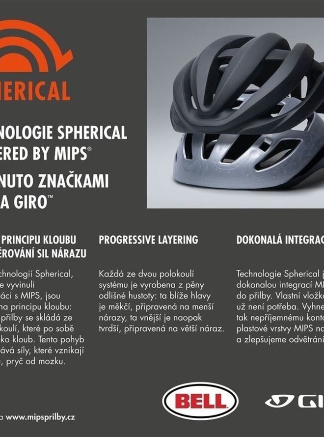 Ľahšie, rýchlejšie, lepšie vetrané. Aries Spherical je najdokonalejšia prilba, akú sme kedy vyrobili. Profil sme zredukovali na minimum, aby čo najlepšie kopíroval siluetu hlavy. To spolu s nízkou hmotnosťou a maximálnou ventiláciou pomocou 24 otvorov Wind Tunnel poskytuje neuveriteľný komfort pri jazde. Ale to hlavné je vnútri – Spherical Technology Powered by MIPS. Táto technológia je založená na princípe pántu. Škrupina sa skladá z dvoch častí (polgulí) vložených do seba a spojených pomocou žltých elastomérov. Celý systém vytvára akési zavesenie, ktoré absorbuje sily v prípade nárazu – hemisféry sa môžu voči sebe pohybovať a elastoméry absorbujú energiu. Vonkajší plášť je navyše vyrobený z tvrdšieho materiálu, vnútorný z mäkšieho materiálu (technológia Progressive Layering). Celou helmou navyše prechádza špeciálny Aura Reinforcement Arch. Uchytenie na hlave zabezpečuje patentovaný upínací systém Roc Loc 5+ Air spolu s antimikrobiálnymi výstelkami Ionic+. MIPS (Multi-Directional Impact Protection System) poskytuje zvýšenú ochranu proti rotačným silám na hlave. UPÍNACÍ SYSTÉM Roc Loc® 5+ Air KONŠTRUKCIA In-mold, progresívne vrstvenie, sférické Powered by MIPS, výstužný oblúk Aura, Nanobead EPS VETRANIE 24 otvorov, Wind Tunnel™ VLASTNOSTI antibakteriálna podšívka Ionic+, ultraľahké remienky Slimline VEĽKOSTI Super Fit™ S (51-55 cm), M (55-59 cm), L (59-63 cm)Detaily