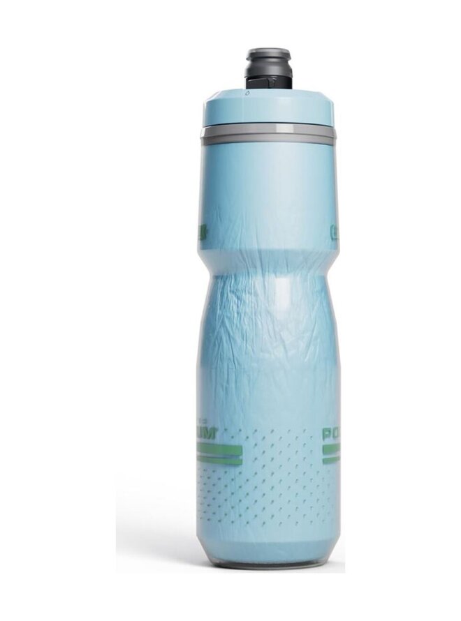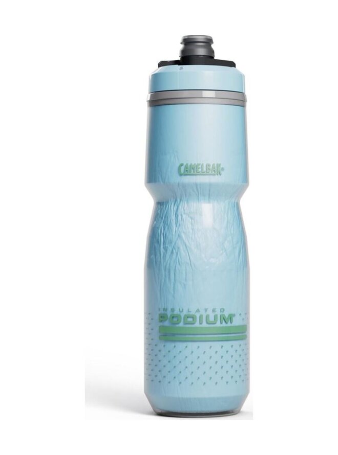 Izolované fľaše CamelBak Podium Chill udržia vďaka dvojitej stene teplotu nápoja 2x dlhšie v porovnaní s normálnou fľašou. Sú vyrobené z BPA, BPS a BPF-free polypropylénu, ktorý zaisťuje vernú chuť nápoja bez plastovej pachuti. Vďaka patentovanému samouzatváraciemu náustku Jet Valve z medicínskeho silikónu voda z fľaše nekvapká na rám. Navyše je vybavená úplným otočným uzáverom (lock-outom) na prepravu plných fliaš v taške alebo v aute.