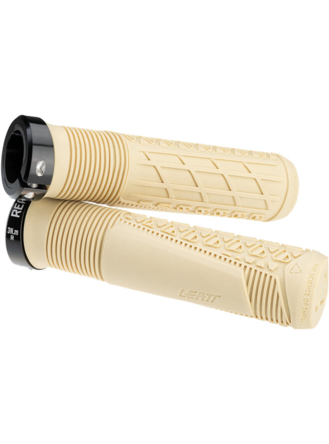 Kužeľový profil s premenlivým priemerom s väčším množstvom materiálu na vonkajšom okraji, kde dochádza k väčšiemu kontaktu, znižuje tlak ruky a zlepšuje ďalšie tlmenie. Mäkké, pružné rebrá okolo palca a ukazováka zlepšujú priľnavosť a zabraňujú skĺznutiu. Polovičné vafle a trojuholníkové bloky behúňa poskytujú extra trakciu prstov a kontrolu. Rozhranie rukoväte je mäkké a sľubuje dobrú rovnováhu medzi hmatovým pocitom a odolnosťou. Konce tyčí na ochranu pred nárazmi chránia riadidlá, autá a steny. Dostupné v dvoch priemeroch (bežný 31 mm a tenký 29 mm), ako aj 4 farby