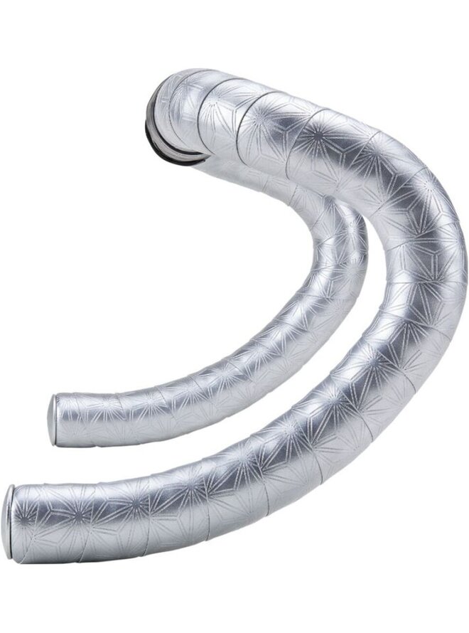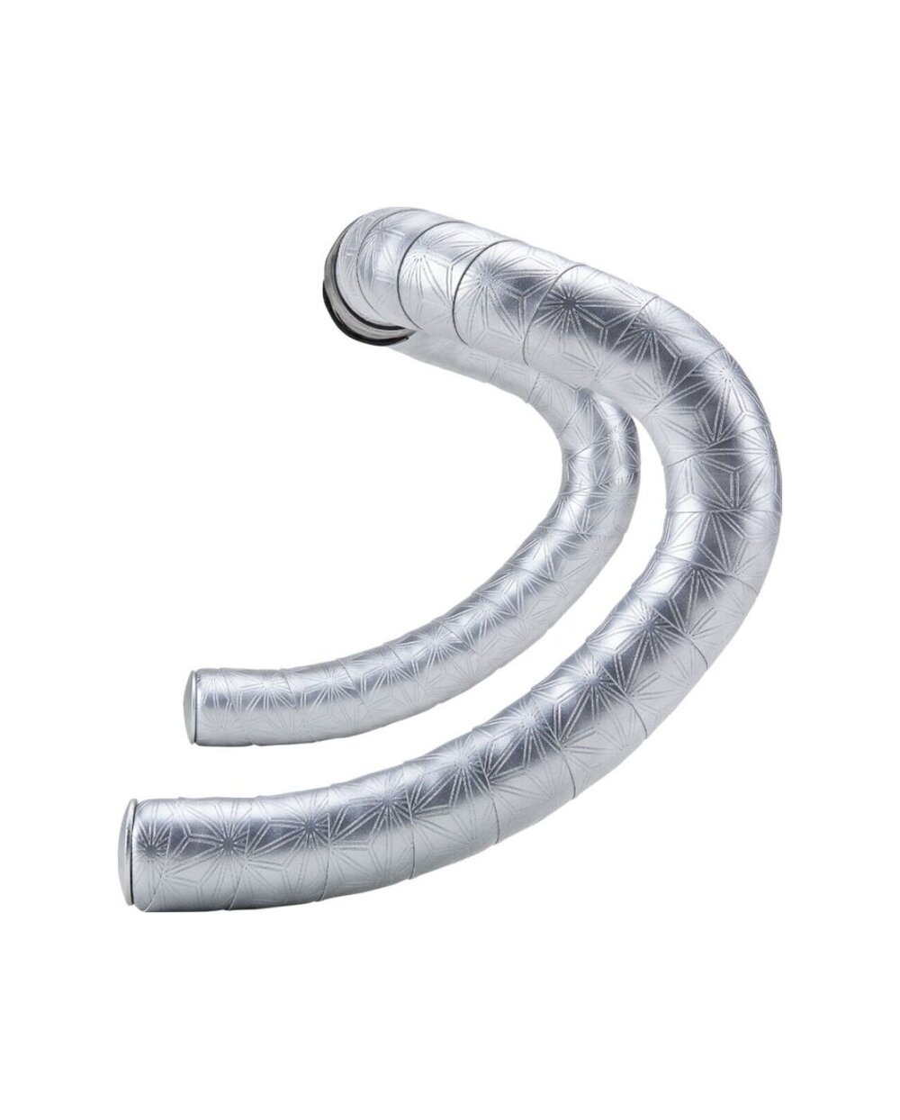 Omotávka Supacaz Bling Handlebar Tape – Oil Slick je prémiová omotávka na riadidlá s výrazným dúhovým „oil slick“ efektom, ktorý mení farby podľa svetla a dodáva bicyklu veľmi nápadný vzhľad. Je vyrobená z kombinácie PU vrchnej vrstvy a penovej/gelovej vrstvy Kush Foam, ktorá výrazne tlmí vibrácie a zvyšuje komfort pri jazde. Materiály sú odolné voči UV žiareniu, potu aj poveternostným podmienkam, takže omotávka si zachováva vzhľad aj pri intenzívnom používaní. Omotávka má dĺžku približne 2160 mm, šírku 30 mm a hrúbku okolo 3 mm, čo poskytuje príjemný úchop aj pri dlhých výjazdoch. V balení sa nachádzajú dve rolky omotávky, hliníkové koncovky Star Plugz a dokončovacia páska pre čisté a pevné ukončenie. Tento model je navrhnutý tak, aby kombinoval výrazný štýl s funkčnosťou, dobrým tlmením a trvácnosťou, takže je obľúbený medzi jazdcami, ktorí chcú spojiť pohodlie a vizuálny efekt.Detaily