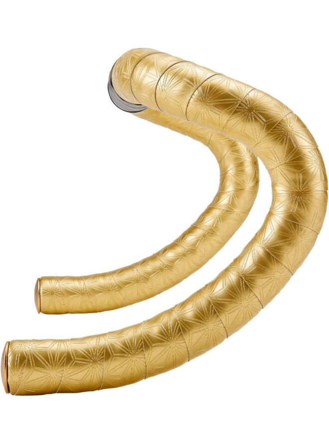Omotávka Supacaz Bling Handlebar Tape – Oil Slick je prémiová omotávka na riadidlá s výrazným dúhovým „oil slick“ efektom, ktorý mení farby podľa svetla a dodáva bicyklu veľmi nápadný vzhľad. Je vyrobená z kombinácie PU vrchnej vrstvy a penovej/gelovej vrstvy Kush Foam, ktorá výrazne tlmí vibrácie a zvyšuje komfort pri jazde. Materiály sú odolné voči UV žiareniu, potu aj poveternostným podmienkam, takže omotávka si zachováva vzhľad aj pri intenzívnom používaní. Omotávka má dĺžku približne 2160 mm, šírku 30 mm a hrúbku okolo 3 mm, čo poskytuje príjemný úchop aj pri dlhých výjazdoch. V balení sa nachádzajú dve rolky omotávky, hliníkové koncovky Star Plugz a dokončovacia páska pre čisté a pevné ukončenie. Tento model je navrhnutý tak, aby kombinoval výrazný štýl s funkčnosťou, dobrým tlmením a trvácnosťou, takže je obľúbený medzi jazdcami, ktorí chcú spojiť pohodlie a vizuálny efekt.Detaily