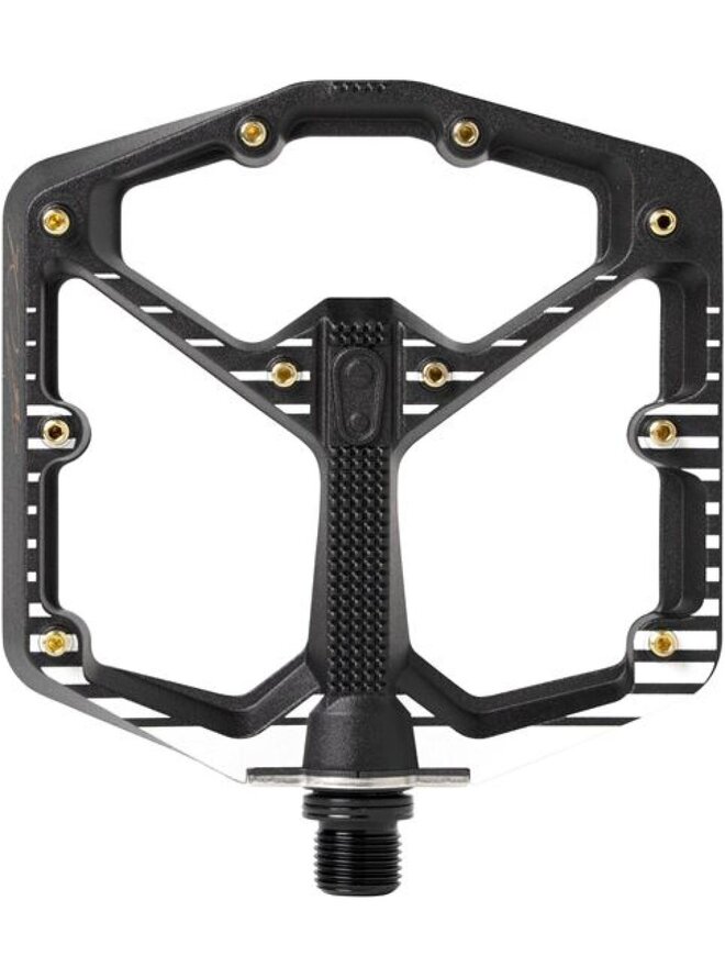 Vrchný pedál s platformou v dvoch veľkostiach pre rôzne veľkosti topánok. Minimálny profil 11-13 mm. Hmotnosť 345 g PLATFORMA hliník 6061-T6 (100 x 100 mm, pre veľkosti topánok 37-43) OSA Cr-Mo oceľ 435 VNÚTORNÉ ČOČKY Posuvné puzdrá Igus LL Vonkajšie ložisko Klzné puzdrá Igus LL PINY 10 na každej strane, vymeniteľné TESTY V MÉDIÁCH: http://www.bikeandride.cz/2016/11/pedaly-crankbrothers-stamp-large-prakticke-predstaveni/Detaily