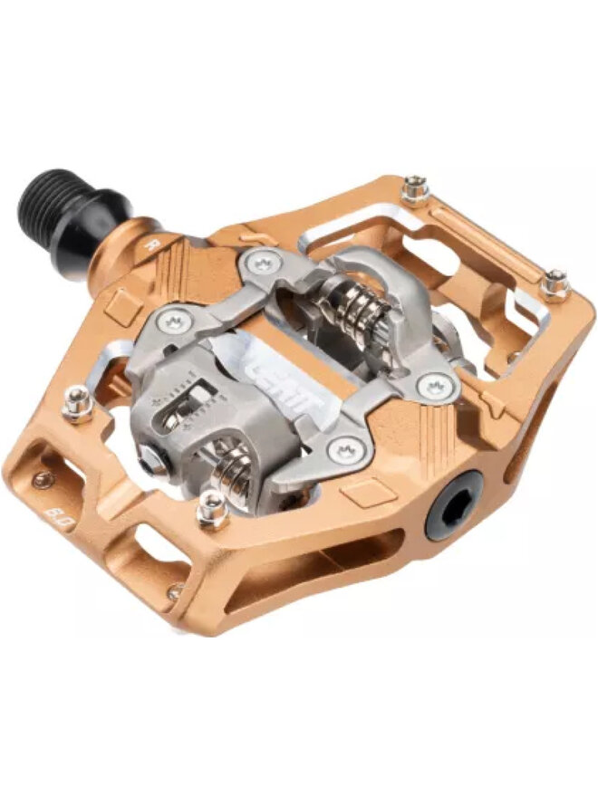 Telo pedálu Trail a All-Mtn bezklipové, vyrobené CNC obrábaním z hliníka 6061-T6. Využíva ultra robustnú kovanú a CNC obrábanú os z chróm-molybdenovej ocele. Plne servisovateľný systém trojitých ložísk pozostáva zo samomazného puzdra LSL, ihlového ložiska a priemyselného valčekového ložiska. Štvornásobné tesnenia udržiavajú vnútorné časti suché za akýchkoľvek podmienok. Obojstranný systém klip-in je kompatibilný s klasickými kopačkami SPD. Retenčný systém má nastaviteľné napätie pružiny pre jemné doladenie nasadzovania a uvoľňovania a zároveň ponúka 5 stupňov voľného pohybu. Stredná platforma okolo systému klip-in poskytuje pevnú oporu topánky pre prenos sily a znížené predné časti uľahčujú nasadzovanie topánky. Štyri odnímateľné kolíky zvyšujú stabilitu a trakciu v technických situáciách po odpojení od pedálu. Pedál je testovaný a certifikovaný podľa štandardu EFBE EPAC All-Mtn TRI-TEST® (kategória 5).