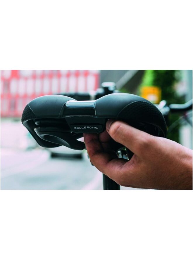 Užite si pohodlné výlety po meste. Ellipse je ideálne cyklistické sedlo na mestské jazdy akejkoľvek dĺžky vďaka patentovanému 3D polstrovaniu Skingel™ doplnenému centrálnym anatomickým výrezom, ktorý poskytuje úľavu od tlaku pre citlivé tkanivá a zároveň zlepšuje ventiláciu. Pridaná je druhá, odolnejšia vrstva, ktorá chráni boky sedla pred odieraním pri všetkých možných mestských dobrodružstvách a opretí bicykla úplne kdekoľvek. Verzia Moderate ponúka ešte väčší jazdný komfort pridaním elastomérov pre lepšie tlmenie nárazov. Sedlá Moderate sú určené pre tých, ktorí majú na bicykli uvoľnenú polohu sedenia (uhol sklonu chrbta približne 60°), takže môžu bez problémov pohodlne sedieť pri šliapaní do pedálov. Jazdná poloha je rozhodujúcim faktorom pri výbere optimálneho sedla. V závislosti od štýlu jazdy sa spôsob, akým sa vaše sedacie kosti dotýkajú sedla, výrazne líši, čo následne ovplyvňuje úroveň pohodlia. Sedlá Selle Royal sú ergonomicky navrhnuté tak, aby vyhovovali všetkým šírkam sedacích kostí a spĺňali anatomické potreby mužov aj žien, čím zabezpečujú úľavu od tlaku v najcitlivejších oblastiach. Vyberte si správnu jazdeckú polohu v uhle 45° (atletická), 60° (mierna) alebo 90° (uvoľnená) a užite si jazdu bez bolesti. 3D Skingel: Vďaka pokročilej technológii, pri ktorej je Royal Gel strategicky umiestnený tam, kde je najviac potrebný, sa dosiahla výrazná úspora hmotnosti až o 42 %, ako aj lepšie rozloženie tlaku až o 40 %. Royal Vacuum. Táto patentovaná technológia Selle Royal nám umožňuje vyrobiť sedlo, ktoré je 100% utesnené a výrazne nepremokavé, a to aj pri jazde v silnom daždi. Elastoméry. Ergonomický otvor: Tento ergonomický stredový výrez, navrhnutý na zníženie tlaku na perineálnu oblasť, je ideálnym sedlom pre najcitlivejších jazdcov. Už žiadna bolesť, len jazdite! Dvojitá bočná ochrana poťahu. Integrovaný systém klipov. Dĺžka: 276 mm Šírka: 180 mm Hmotnosť: 474 grDetaily