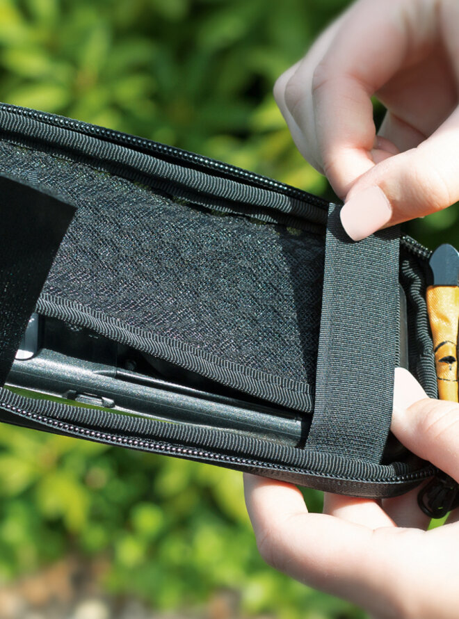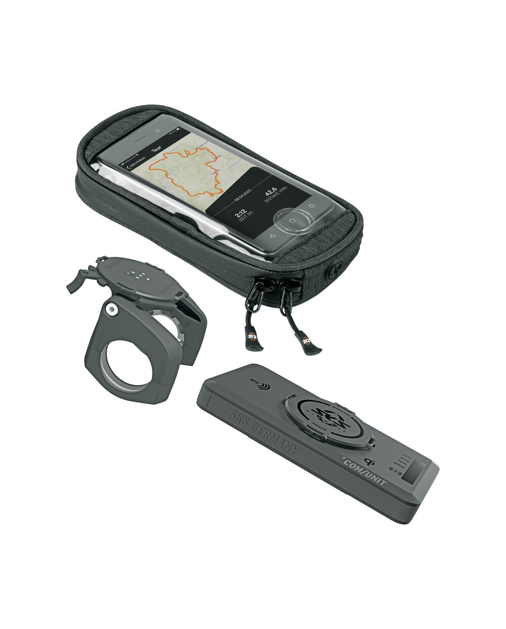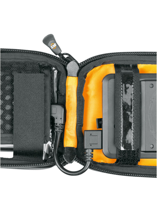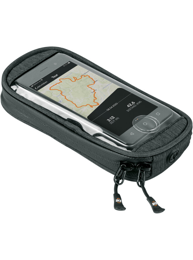 Vodotesné univerzálne puzdro na mobil COM/SMARTBAG (vhodné pre všetky bežné smartfóny) potom na držiak pripevníte jediným pootočením. Nie je teda potrebný špeciálny kryt COMPIT. Priehľadná fólia zaisťuje pohodlné ovládanie dotykového displeja. Extra vrecko naspodku ponúka ďalší priestor nielen pre kľúče a peniaze, ale aj pre powerbanku COM/UNIT pre indukčné nabíjanie mobilného telefónu pri jazde na bicykli. Powerbankou je možné zároveň nabíja aj ďalšie zariadenia pomocou priloženého USB kábla.