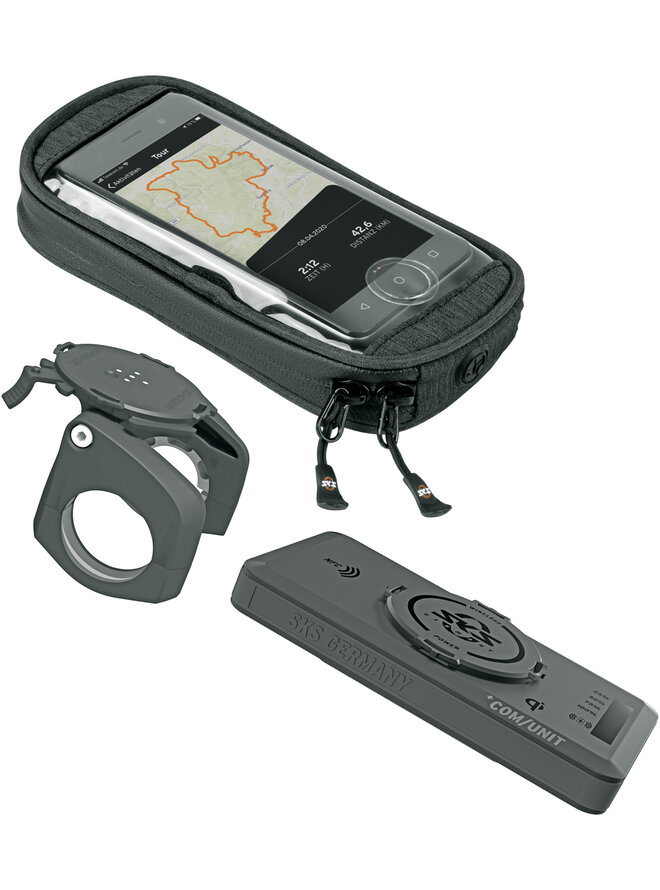 Systém COMPIT+ sa skladá z držiaka smartfónu a powerbanky. Akékoľvek mobilné zariadenie vybavené funkciou bezdrôtového nabíjania je možné pripojiť k +COM/UNIT a nabíjať na cestách. Kompletná sada s priloženými dištančnými podložkami ponúka okrem upínacích ramien tiež možnosť uchytenia držiaka mobilného telefónu aj na elektrobicykle so stredovými displejmi.