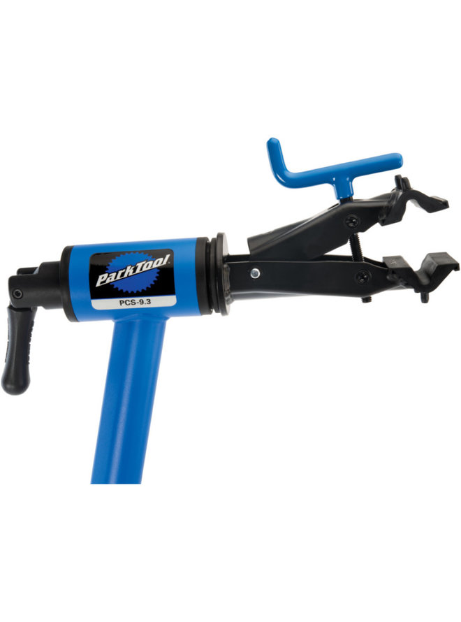 Skladací montážny stojan na domáce použitie, výškovo nastaviteľný (rozsah 99-145 cm), vyrobený z oceľových trubiek a profilov. Inovovaný model stojana PCS-9-2. Plynulá aretácia upínača pri jeho otáčaní okolo vodorovnej osi, upínanie rúrok rámu (rozsah 25-76 mm) do upínača otáčaním vratidla so závitom.