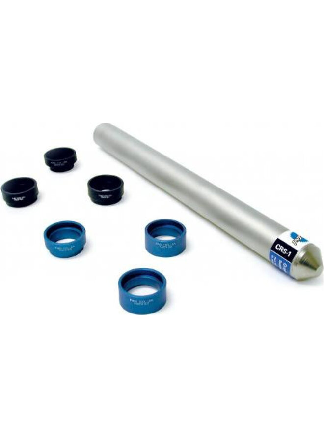 Set CRS-1 obsahuje oceľovú narážaciu trubku a sadu šiestich duralových tvarových adaptérov- 3 čierne na dolné kónusy hlavového zloženia s priemerom 1" a 3 modré na dolné kónusy hlavového zloženia s priemerom 1 1/8".