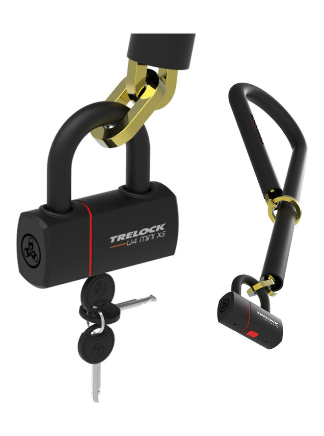 Kombinácia reťaze a U-zámku, to je zámok Trelok LC 680. Tento zámok na bicykel umožňuje bezpečné uzamknutie bicyklov, ktoré vyžadujú veľký rozsah uzamykania.