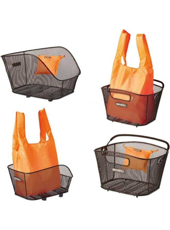 Vhodná pre všetky oceľové košíky z jemnej mriežky od firmy Basil. K dispozícii v rôznych farbách. Skladateľná zo všestranným využitím aj mimo bicykla.Detaily