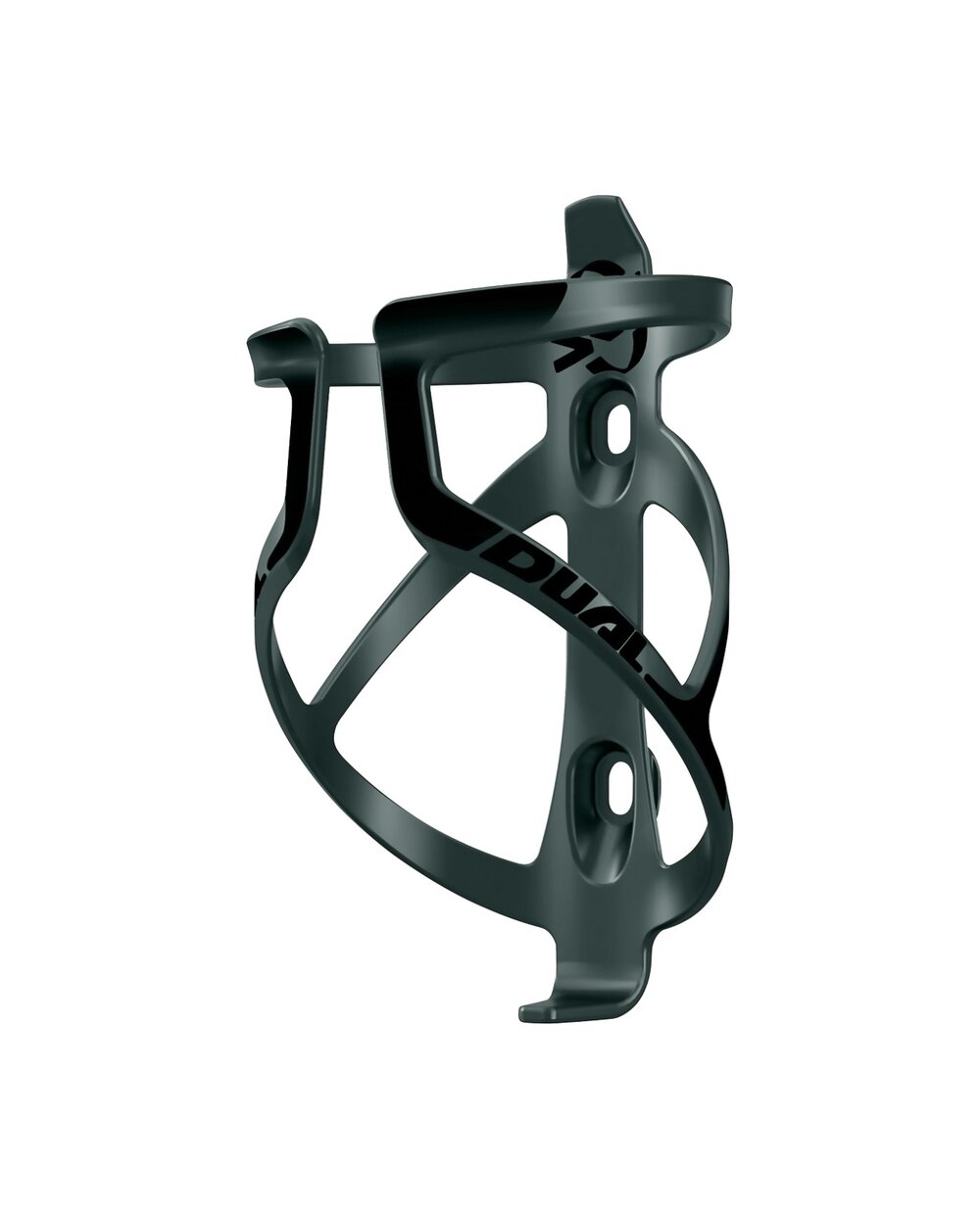 Košík na fľašu DUAL je vyrobený z recyklovateľných karbónových vlákien pochádzajúcich z automobilového priemyslu a polyamidu, ktorý je odolný proti nárazu. Vďaka vysokému obsahu uhlíka je košík ľahký, pričom si zachováva vynikajúcu stabilitu. Jeho dizajn v matnej čiernej farbe s lesklými detailmi dodáva produktu elegantný a nenápadný vzhľad, ideálny pre cyklistov s citom pre štýl a funkčnosť.