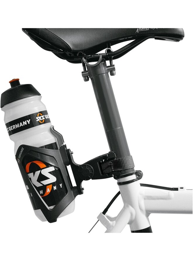 SKS adaptér ku košíku na fľašu, vhodný pre všetky rámy bez otvorov na košík. Vďaka rýchloupínaciemu systému je použiteľný na predstavec, sedlovku alebo rámovú trubku.