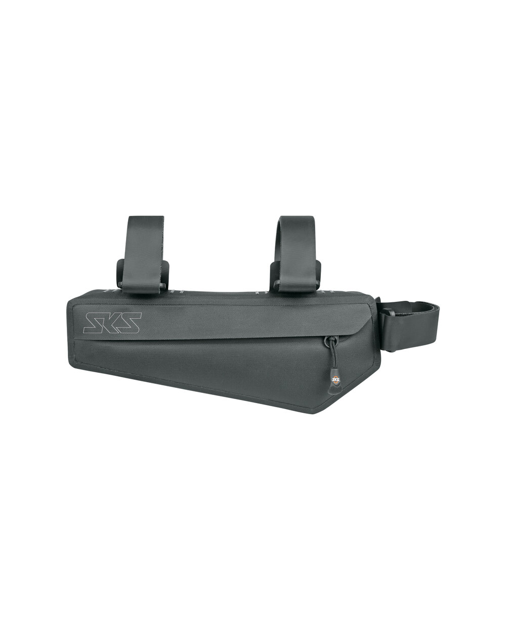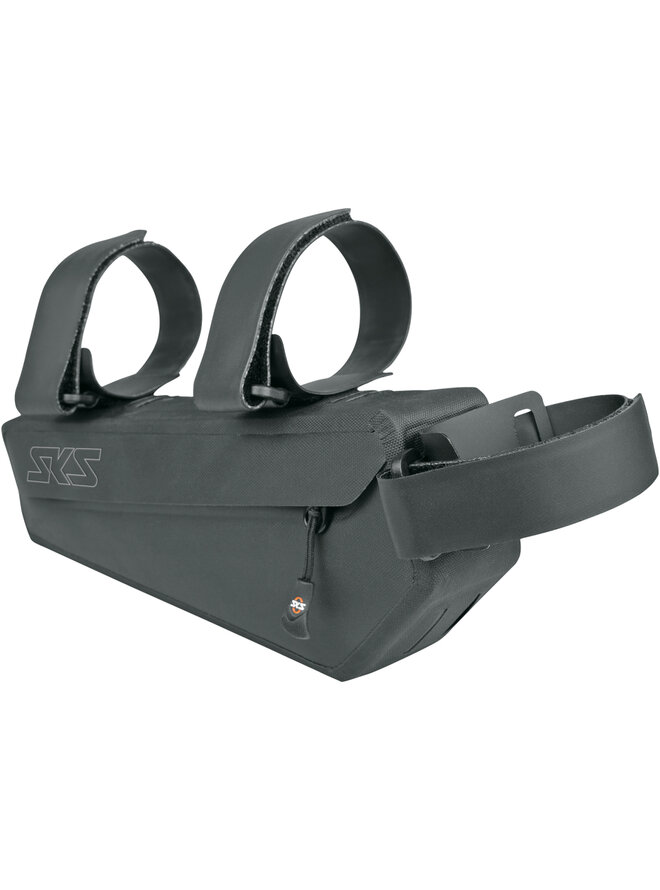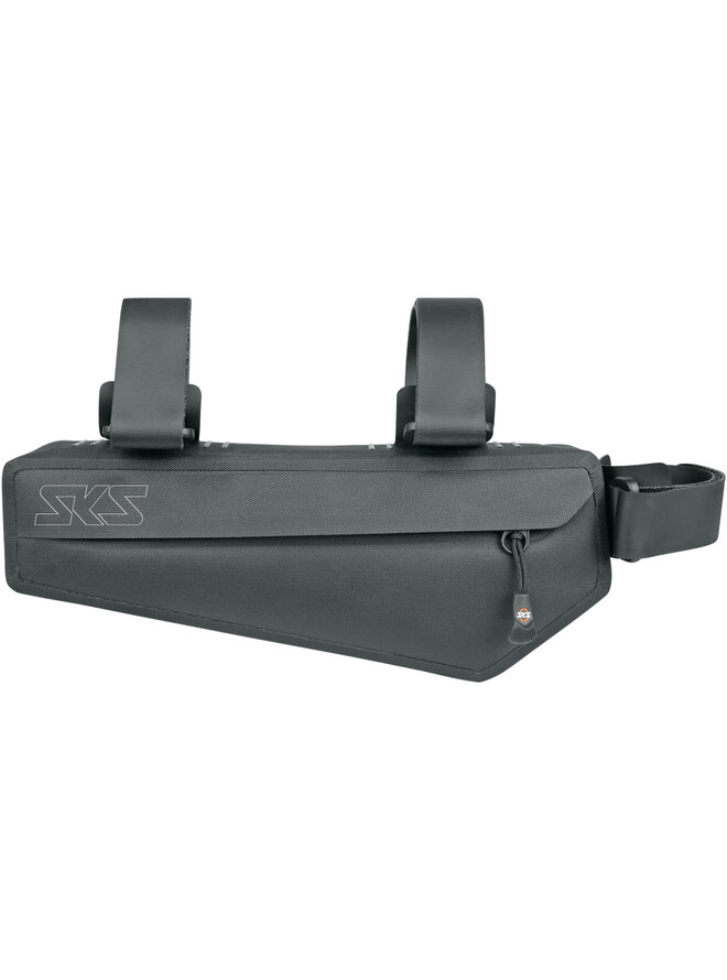 Do rámového trojuholníka sa vďaka úzkemu dizajnu tašky SKS ľahko zmestia aj fľaše na pitie. Tašku možno bezpečne namontovať na rám bicykla alebo sedlovku pomocou extra dlhých protišmykových suchých zipsov s ochranou rámu. Je možné ju namontovať aj na aero sedlovky, pričom háčiky a suché zipsy sa dajú skrátiť a vymeniť. Pogumovaná horná časť tašky chráni lak a poskytuje podporu na všetkých cestách.