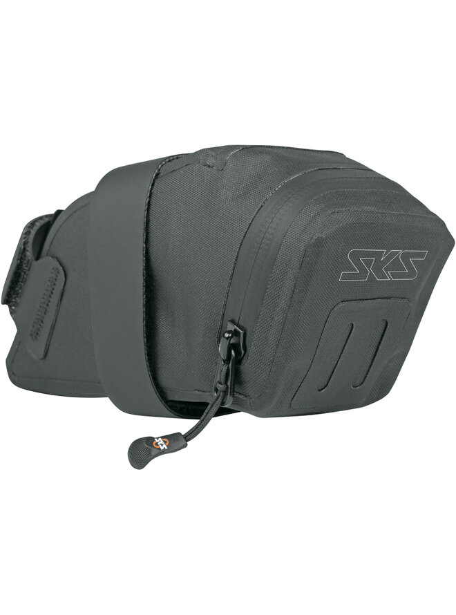 Dve vnútorné sieťované vrecká bezpečne uschovajú kľúče alebo peniaze. Tašku SKS možno ľahko upevniť pod sedlo bicykla pomocou protišmykových suchých zipsov. Tieto zipsy sa dajú individuálne skrátiť a vymeniť. Na zadnej strane tašky je držiak na zadné svetlo a reflexné logo SKS, ktoré zvyšuje viditeľnosť za šera.