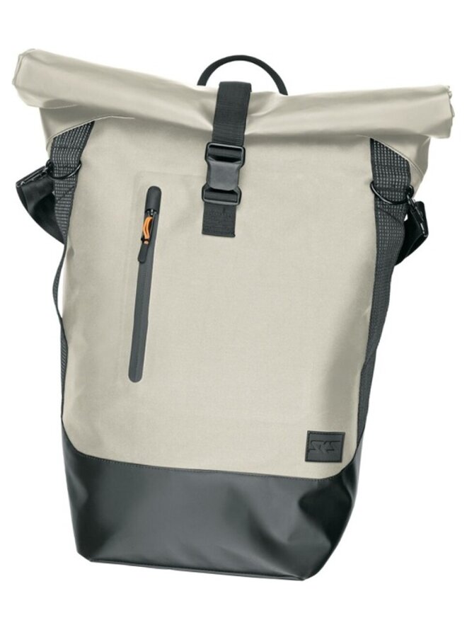 SKS Infinity Urban Sidebag Sand je praktická bočná taška na bicykel s objemom asi 20 litrov. Je vyrobená z vodoodolného materiálu, má rolovacie uzatváranie, nastaviteľné uchytenie na nosič a vnútorné vrecko na notebook. Vďaka ramennému popruhu ju možno použiť aj ako bežnú tašku.Detaily