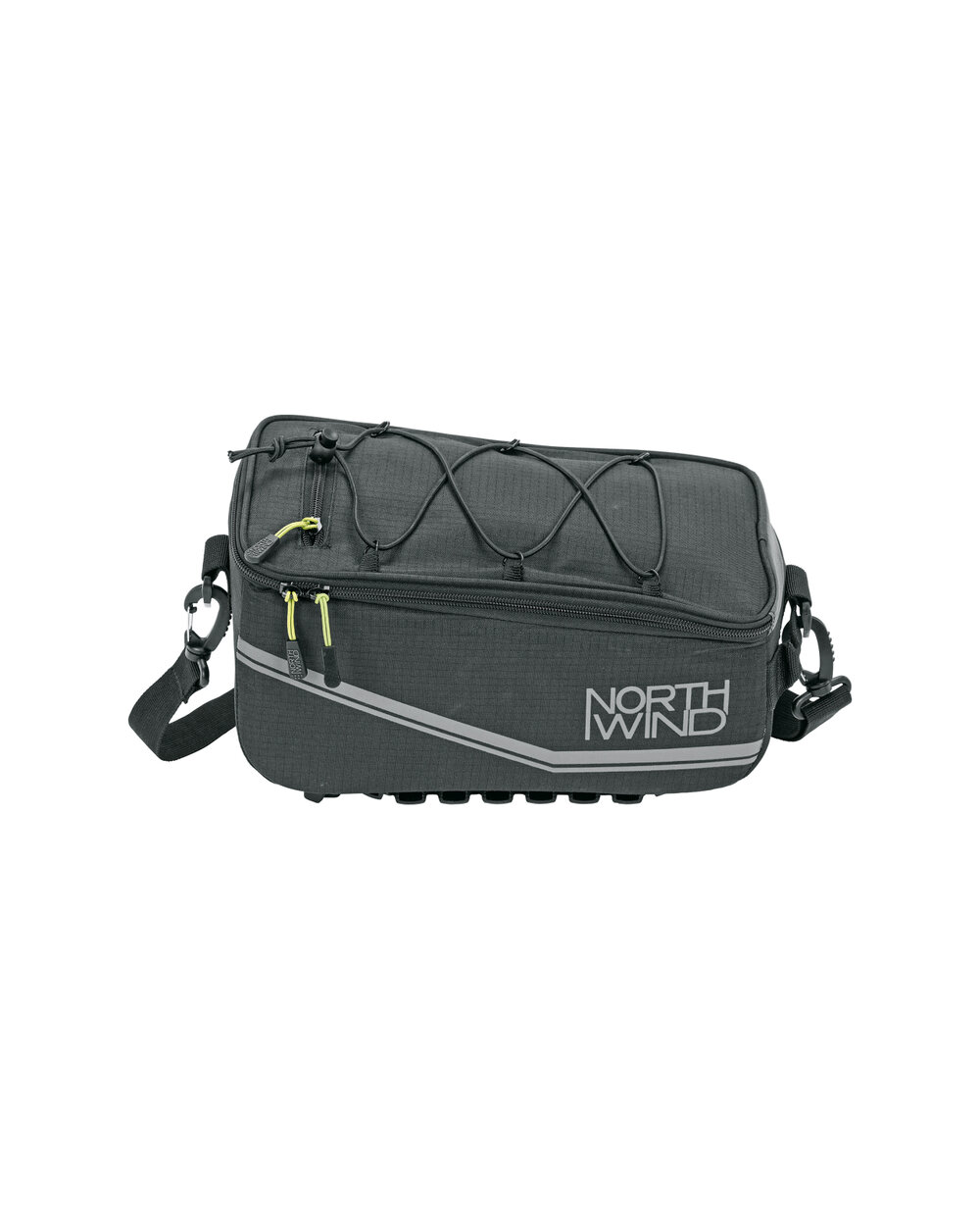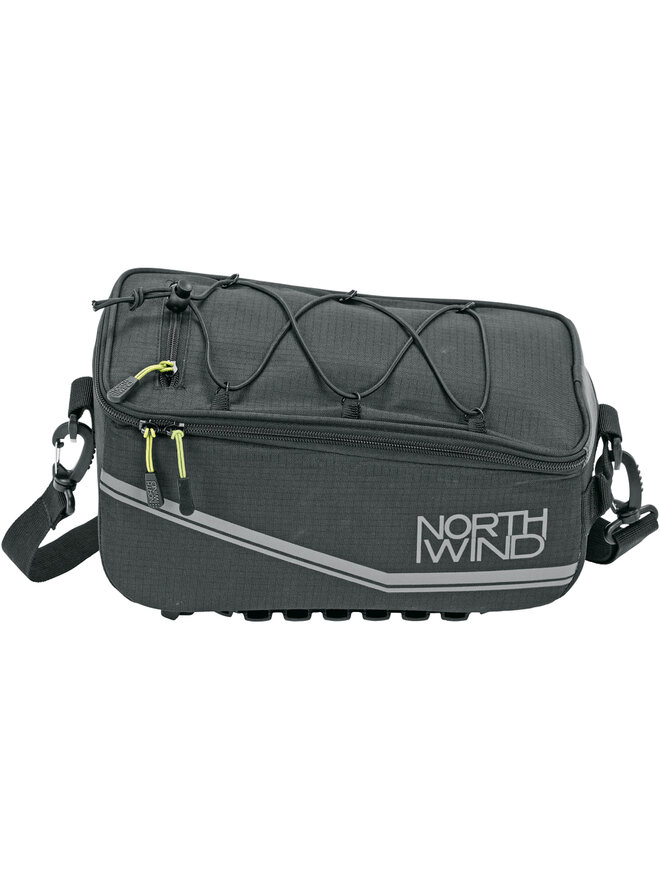 Taška s priestrannou hlavnou priehradkou. Úložné vrecko z elastickej sieťoviny umožňuje prevážať ďalšiu batožinu. Pláštenka udrží tašku aj jej obsah v suchu, zatiaľ čo reflexné prvky na vodoodpudivej nylonovej tkanine zabezpečujú viditeľnosť aj v tme.