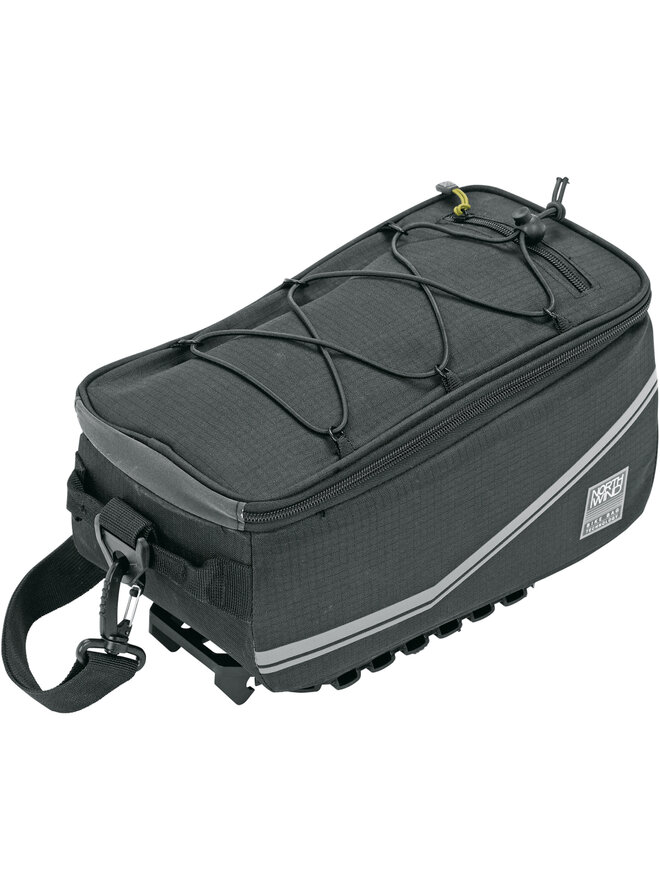 Taška je vybavená adaptérovo doskou umiestnenou na spodnej strane. PURE SMARTBAG sa počas niekoľkých sekúnd pevne zacvakne na všetky nosiče batožiny so systémom MonkeyLoad-T. Tlmiaca vrstva pod doskou zaručuje stabilné uchytenie a tašku je možné aj uzamknúť. Mechanizmus sa uvoľní jednoduchým potiahnutím dopredu. Tašku môžeš nosiť za bočné rúčky alebo vďaka ramennému popruhu použiť aj ako tašku cez plece.