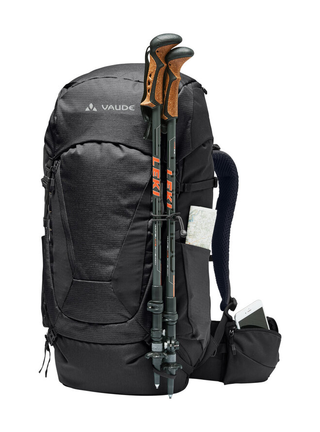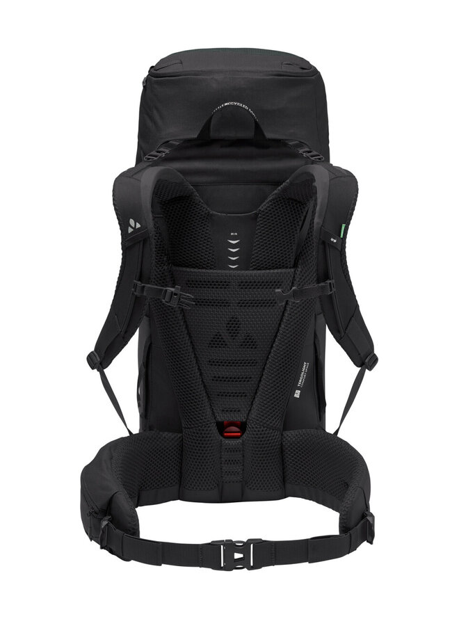 - bočné kompresné popruhy, horný kompresný popruh s všestrannou opravnou prackou, jeden bod uchytenia palice, pútka na vybavenie, pripevňovacie pútka na veku, otvor pre hydratačný systém, hrudný popruh s píšťalka, informačný panel pre osobné údaje