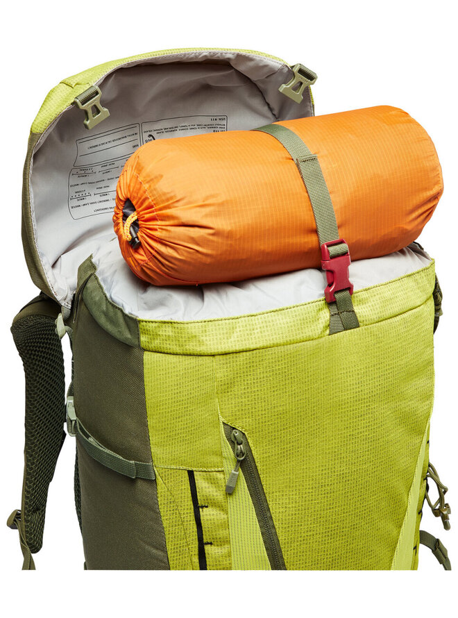 - bočné kompresné popruhy, horný kompresný popruh s všestrannou opravnou prackou, jeden bod uchytenia palice, pútka na vybavenie, pripevňovacie pútka na veku, otvor pre hydratačný systém, hrudný popruh s píšťalka, informačný panel pre osobné údaje