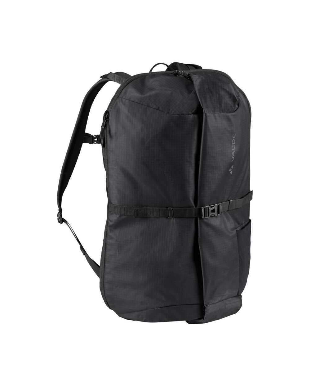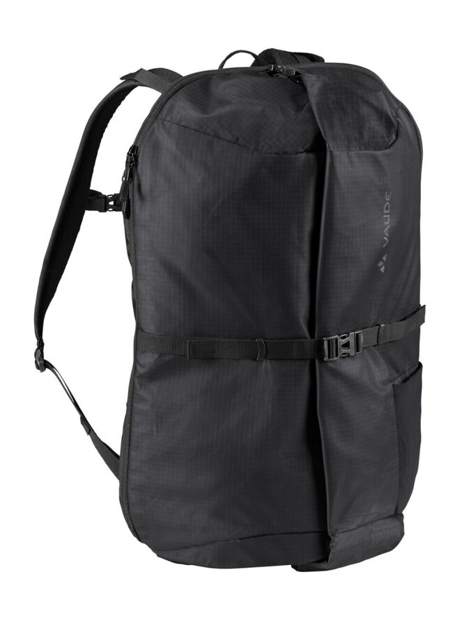 - 1 bočné strečové vrecko na fľašu, kompresné popruhy, rukoväť na vrchu, čalúnený chrbát