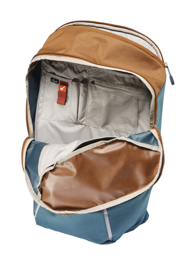 - na prednej strane batohu je ploché vrecko na zips, držiak na prilbu, reflexné prvky, pláštenka