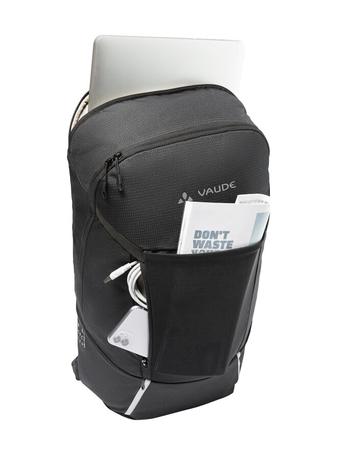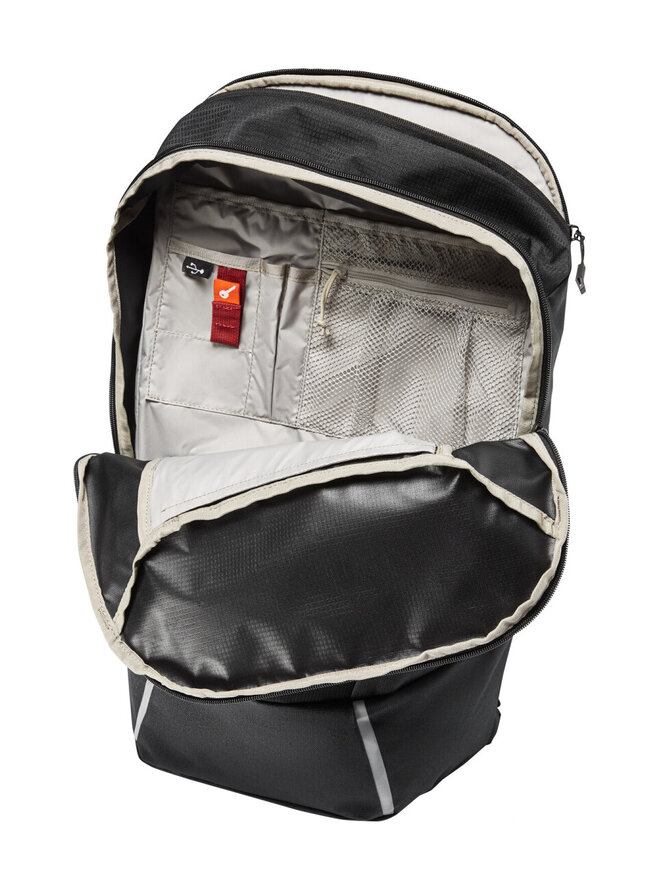 - na prednej strane batohu je ploché vrecko na zips, držiak na prilbu, reflexné prvky, pláštenka