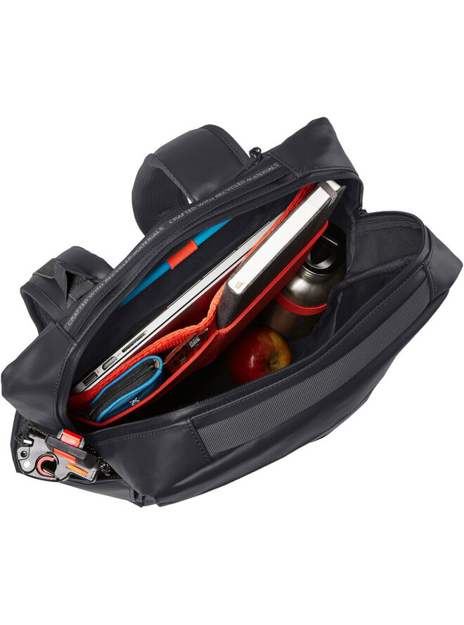- priestranná hlavná priehradka ako zásuvné vrecko na notebook do 15,6” ako aj miesto na písacie potreby a fľašu s vodou