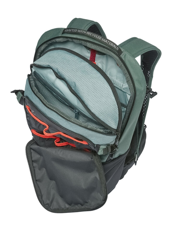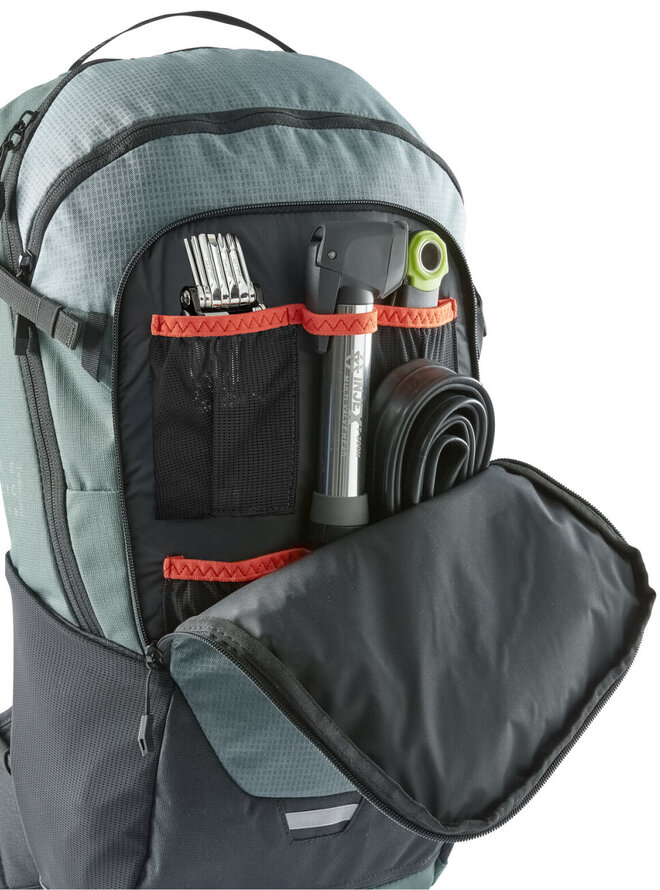 - pred hlavnou priehradkou je vnútorné vrecko na zips, priehradka na náradie, držiak na prilbu, vrecko na pravom krídle bedrového pásu, očné stretchové vrecká, samostatná priehradka na hydratačný vak, kompresné popruhy na bokoch, pútko na popruh na slnečné okuliare, pláštenka v oddelenej spodnej priehradke a reflexné prvky