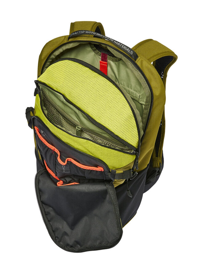 - pred hlavnou priehradkou je vnútorné vrecko na zips, priehradka na náradie, držiak na prilbu, vrecko na pravom krídle bedrového pásu, očné stretchové vrecká, samostatná priehradka na hydratačný vak, kompresné popruhy na bokoch, pútko na popruh na slnečné okuliare, pláštenka v oddelenej spodnej priehradke a reflexné prvky