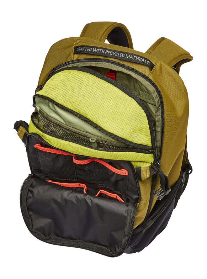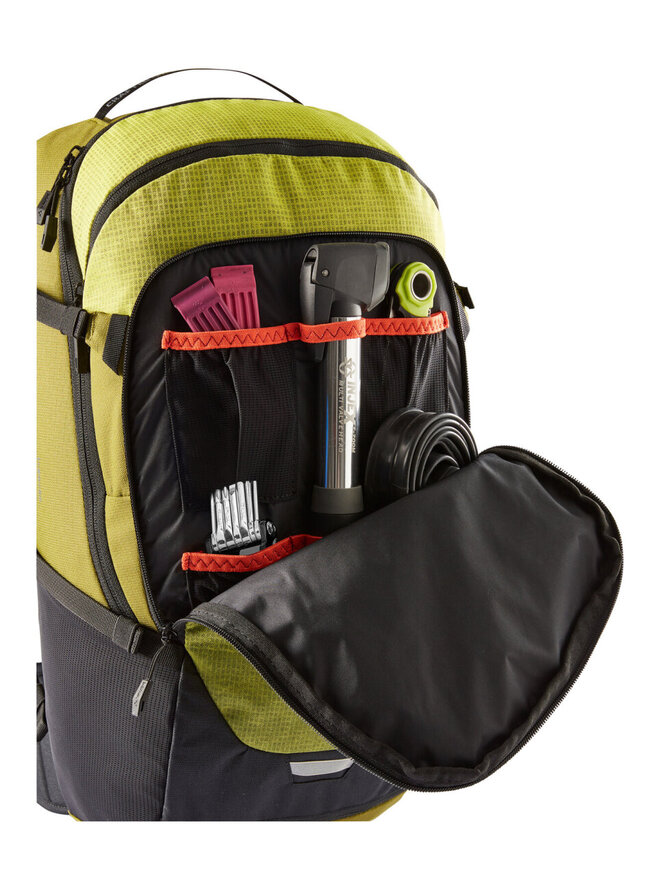 - pred hlavnou priehradkou je vnútorné vrecko na zips, priehradka na náradie, držiak na prilbu, vrecko na pravom krídle bedrového pásu, očné stretchové vrecká, samostatná priehradka na hydratačný vak, kompresné popruhy na bokoch, pútko na popruh na slnečné okuliare, pláštenka v oddelenej spodnej priehradke a reflexné prvky