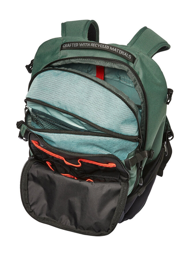 - pred hlavnou priehradkou je vnútorné vrecko na zips, priehradka na náradie, držiak na prilbu, vrecko na pravom krídle bedrového pásu, očné stretchové vrecká, samostatná priehradka na hydratačný vak, kompresné popruhy na bokoch, pútko na popruh na slnečné okuliare, pláštenka v oddelenej spodnej priehradke a reflexné prvky