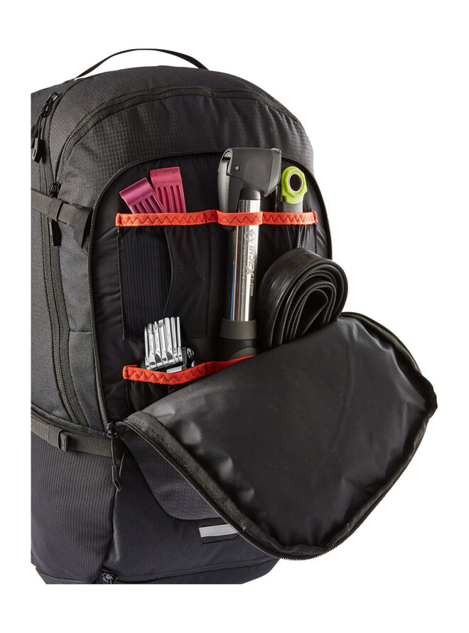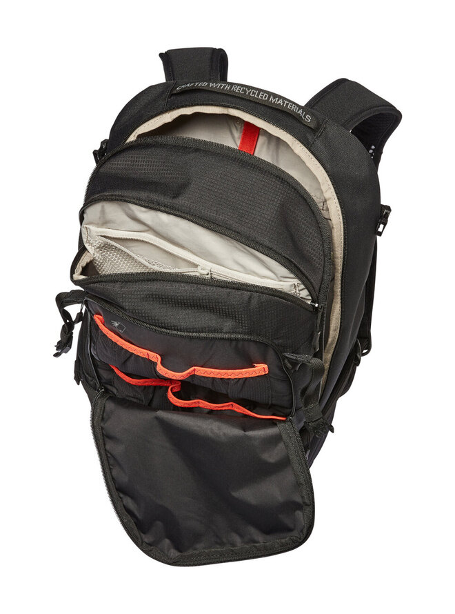 - pred hlavnou priehradkou je vnútorné vrecko na zips, priehradka na náradie, držiak na prilbu, vrecko na pravom krídle bedrového pásu, očné stretchové vrecká, samostatná priehradka na hydratačný vak, kompresné popruhy na bokoch, pútko na popruh na slnečné okuliare, pláštenka v oddelenej spodnej priehradke a reflexné prvky