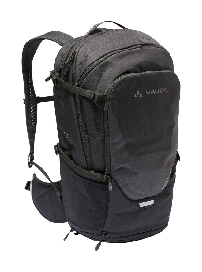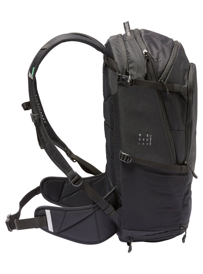 - vrecko na zips na pravej strane bedrového pásu, bočné stretchové vrecká, samostatná priehradka na hydratačný vak, kompresné popruhy na horných stranách, pláštenka v oddelenej spodnej priehradke a reflexné prvky