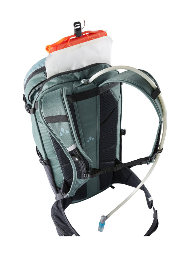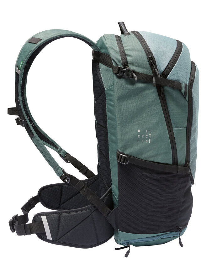 - vrecko na zips na pravej strane bedrového pásu, bočné stretchové vrecká, samostatná priehradka na hydratačný vak, kompresné popruhy na horných stranách, pláštenka v oddelenej spodnej priehradke a reflexné prvky