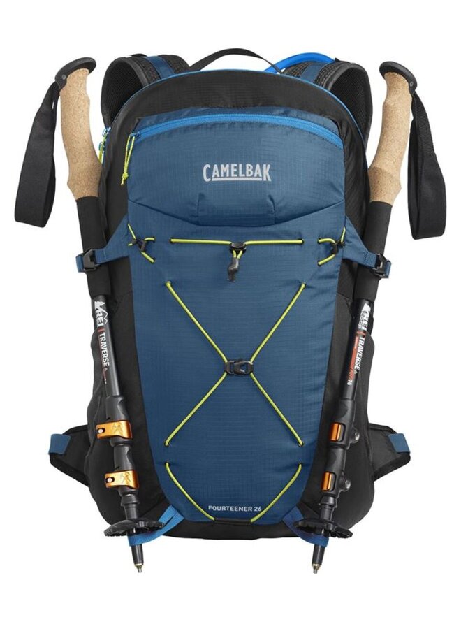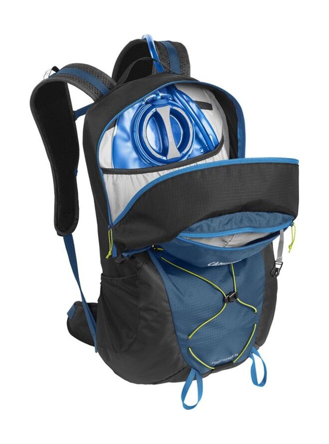 Fourteener 26 je denný batoh vybavený 3l rezervoárom Crux so systémom Quicklink. Celková kapacita je 26 l. Je vybavený bedrovým pásom, nastaviteľným hrudným pásom, úchytmi na trekové palice, držiakom na hadičku rezervoáru, popruhovými vreckami na telefón a iné predmety, ktoré chcete mať po ruke, bočnými vreckami a reflexnými prvkami. Crux™ 3L RESERVOIR Chrbtový systém Air Support™ Max ÚLOŽNÝ PRIESTOR S OBJEMOM 26 L Hmotnosť 970 gDetaily