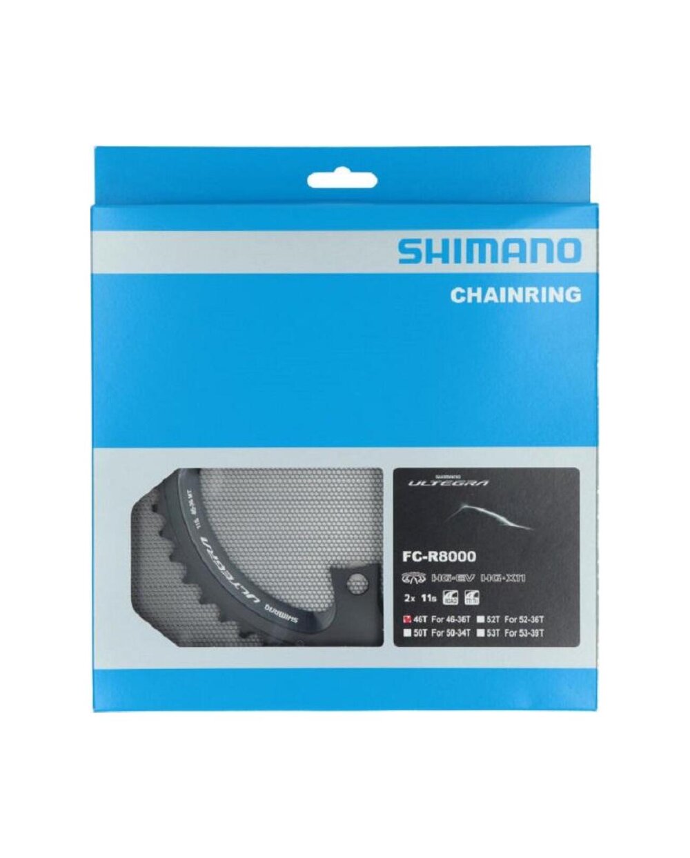 Prevodník Ultegra 46 zubov pre kľuky FC-R8000 ( 11-rýchlostné ). Veľký prevodník pre kľuky s použitím pre cyklokros alebo gravel (46/36), pre 11-kolo, so špeciálnymi zubami zabezpečia vynikajúcu úroveň radenia za akýchkoľvek jazdných podmienok. Typ: ROAD, Počet zubov na prevodníku: 46, Prevodníky: 11 rýchlostné, Pre kombináciu prevodníkov: 46/36, Počet prevodov: 2x11, Rozteč prevodníkov: 110mm, čierny Sada ULTEGRA je priamym prechodom od dokonalosti sady DURA-ACE. Otestovaná profesionálnymi jazdcami v pelotóne. Bezproblémové použitie za každodenných poveternostných podmienok je kľúčovým prvkom, ktorý prispieva k bezchybnému komfortu pri brzdení a radení počas tréningov, pretekov, alebo víkendových jazdách.Detaily