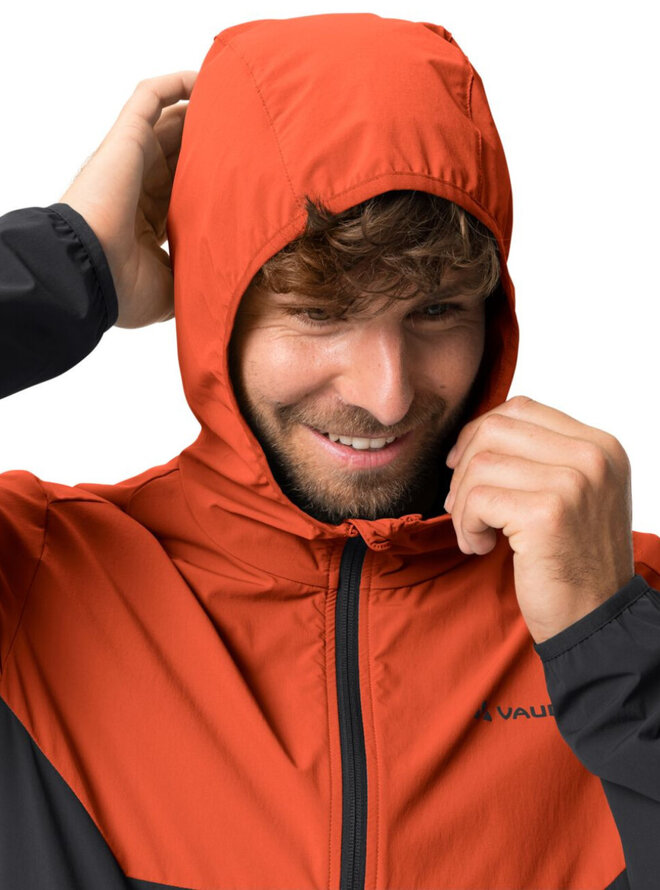 - kĺbové rukávy, strečový materiál, 2 predné vrecká na zips, predný zips, elastické manžety, sťahovacia šnúrka na spodnom leme, nastaviteľné cez vrecká, pripojená kapucňa s možnosťou stiahnutia, vetranie cez predné vrecká, farebný blok