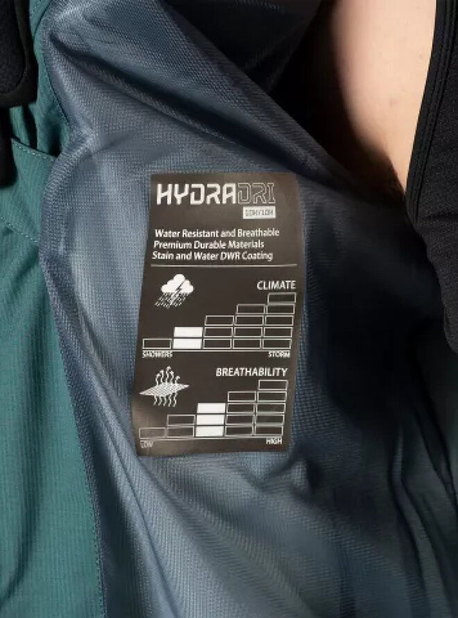 HydraDri: 10 000 mm vodný stĺpec / 10 000 g/m² priedušnosť