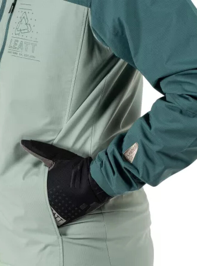 Vyrobená z prémiovej dvojvrstvovej membrány HydraDri od značky Leatt – vodeodolnosť a priedušnosť 10 000/10 000, čo je ideálne pre väčšinu jazdeckých podmienok. Navyše sa dá bunda zložiť do vlastného hrudného vrecka, takže ju ľahko zbalíte a vezmete kamkoľvek so sebou.