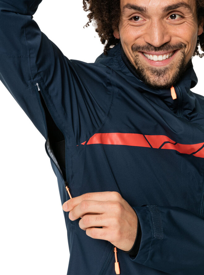- integrovaná kapucňa, kĺbové rukávy so zapínaním na suchý zips, dve predné vrecká s nepremokavými zipsami a nepremokavé zipsy v podpazuší na dokonalé vetranie