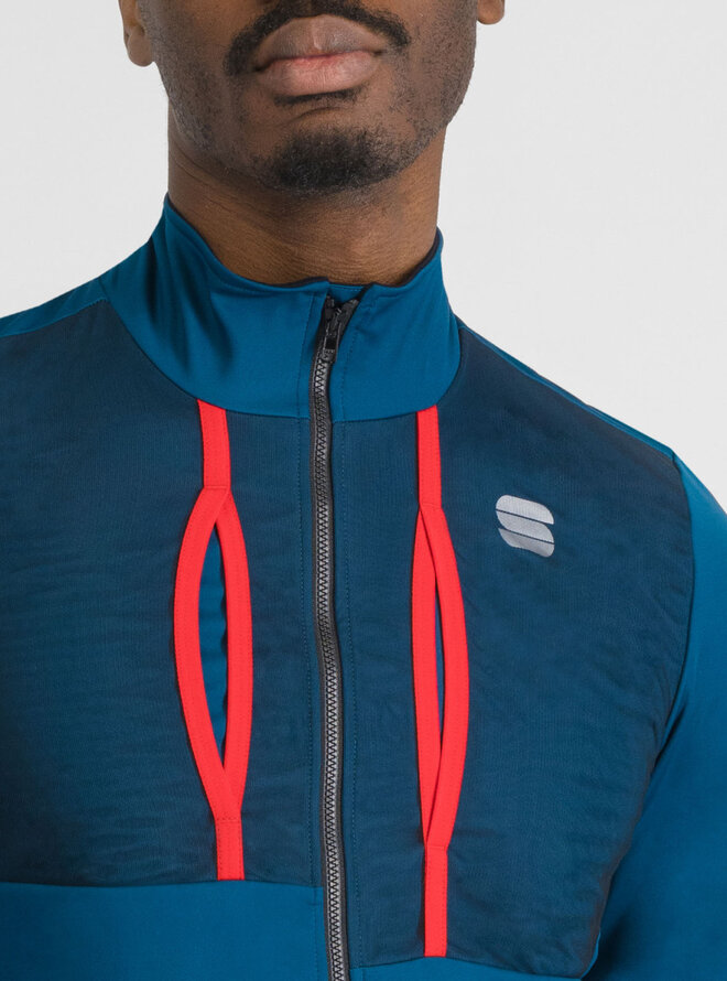 - Vnútorná podšívka bundy v oblasti trupu je vyrobená z materiálu Polartec® Alpha Direct, ktorý predstavuje vrchol tepelnej izolácie v cyklistických bundách. Tento materiál nielenže výborne udržiava teplo, ale tiež efektívne reguluje telesnú teplotu tým, že odvádza prebytočnú vlhkosť od tela, čím zabraňuje prehriatiu aj pri jazdeni vo vysokom tempe