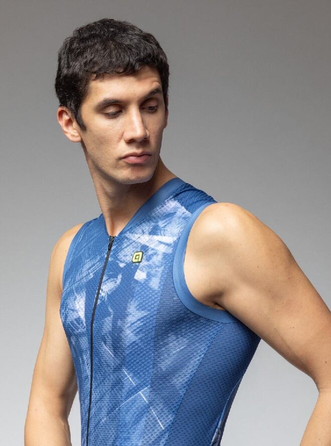 Dres bez rukávov je tou najlepšou voľbou pre naozaj horúce letné dni, preto taliansky výrobca ALÉ vyvinul skvelý kúsok kombinujúci moderné materiály, osobitý dizajn a skvele padnúci strih.