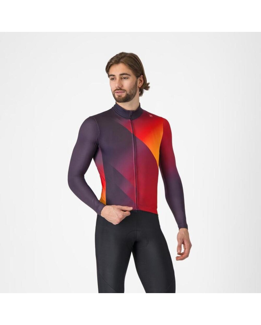 Cyklistický dres s dlhým rukávom zimný - AMPLIFY - čierna/červená/žltá