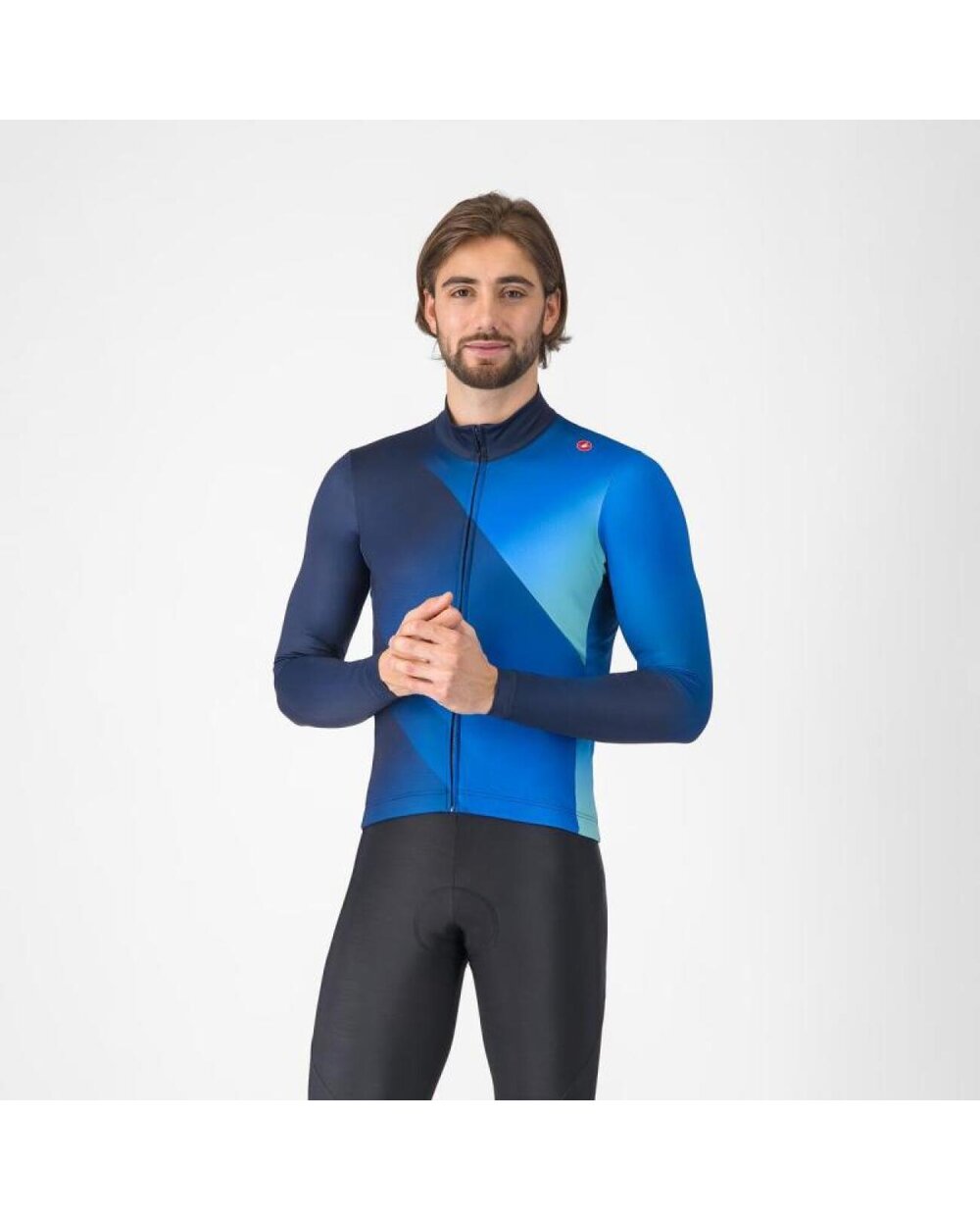 Cyklistický dres s dlhým rukávom zimný - AMPLIFY - modrá