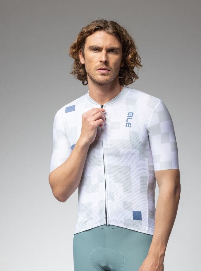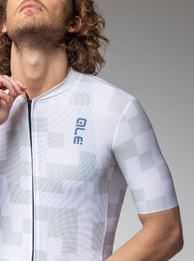 Cyklistický dres s krátkym rukávom - PRAGMA PIXEL - biela